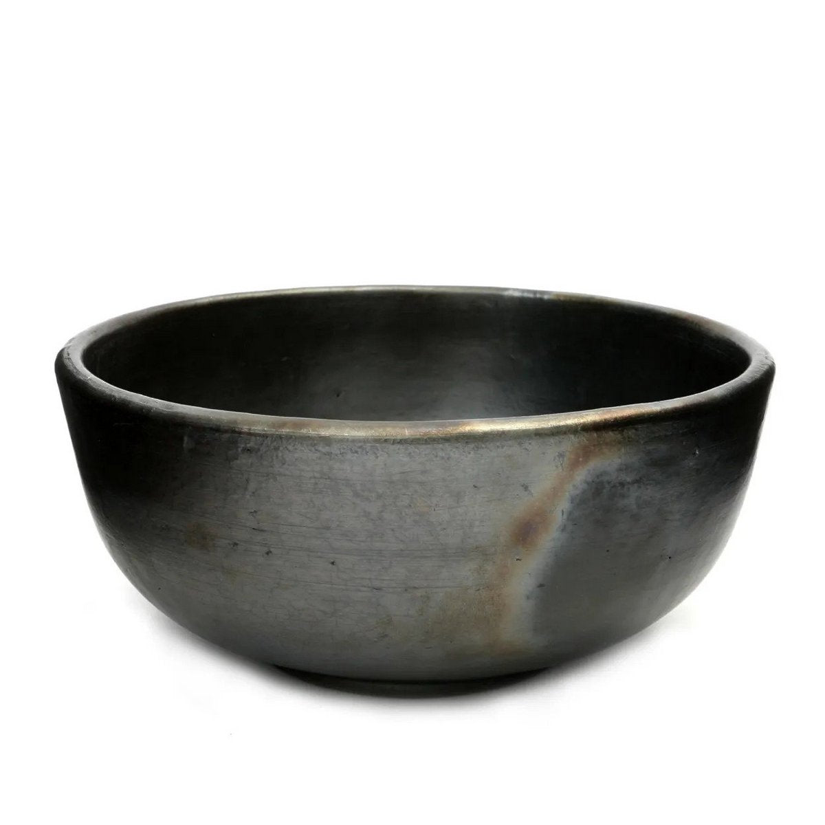 Façonné à la main à partir de terre cuite naturelle, ce bol noir à la finition “brûlée” est une pièce singulière, à mi-chemin entre tradition et modernité. Sa forme généreuse et sa texture mate racontent l’histoire d’un artisanat respectueux, pensé pour durer.
