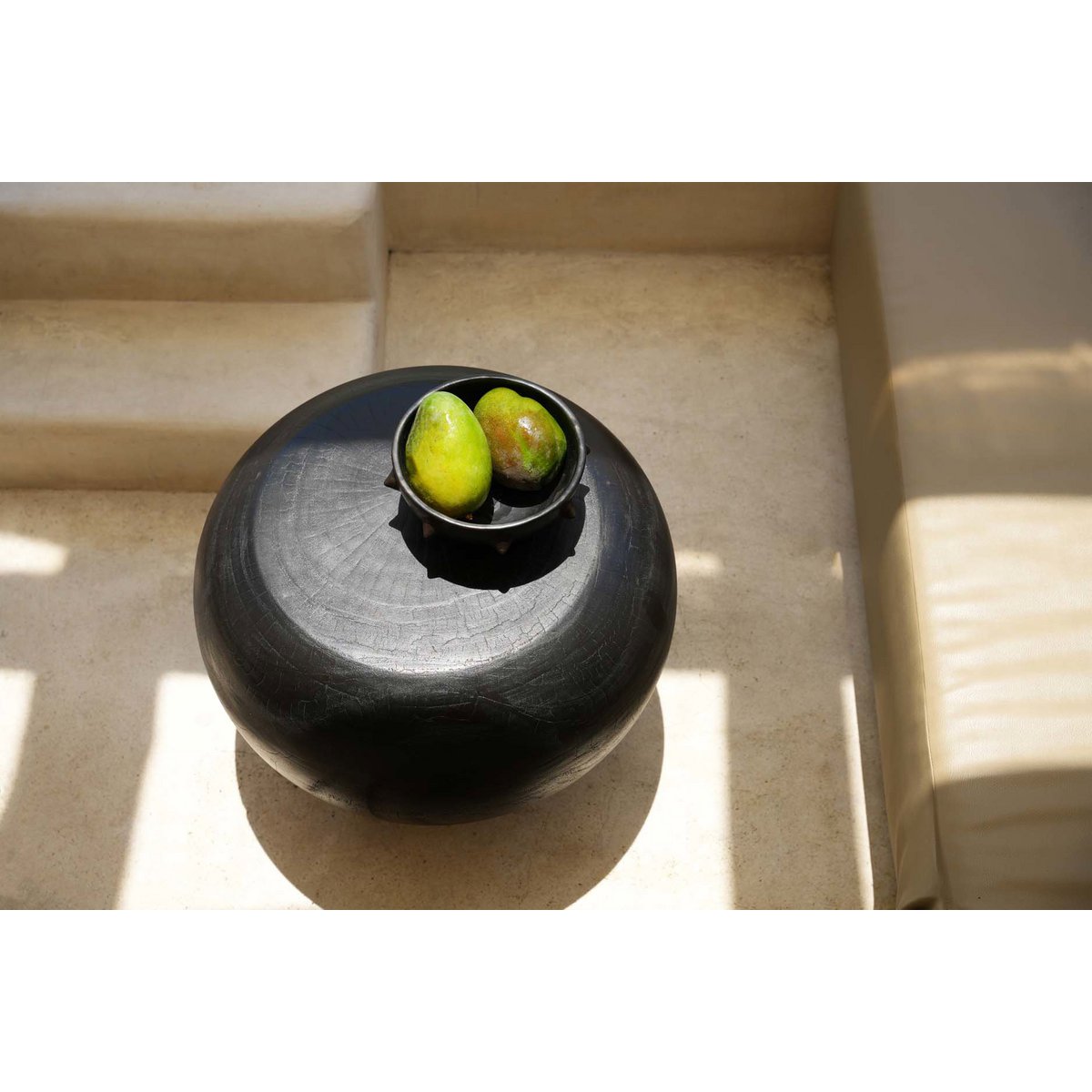 Ce bol noir profond en terre cuite brûlée attire tous les regards par son design brut et expressif. Fabriqué à la main selon un savoir-faire traditionnel javanais, il mêle textures singulières et courbes organiques, pour sublimer vos plats avec caractère.