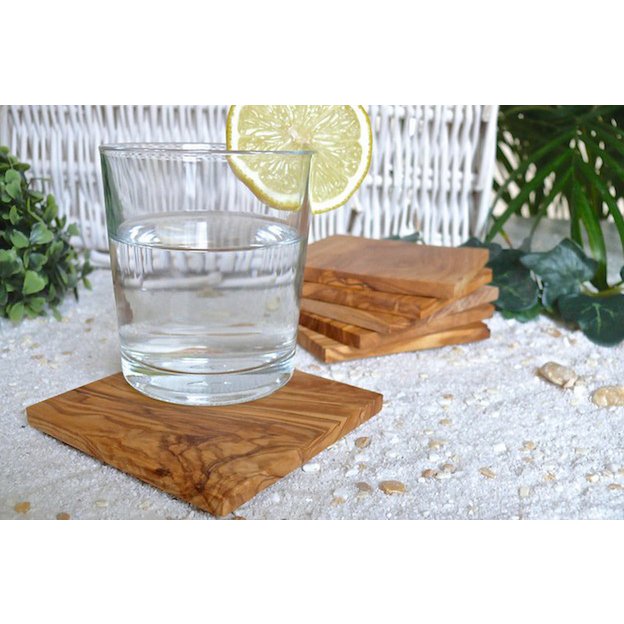 Sous-verres carrés 9 x 9 cm, lot de 6, en bois d'olivier Sous-verres carrés joliment grainés pour verres et bouteilles. Non seulement joli à regarder, mais aussi pratique car il protège la table des taches de boisson. L'entretien est facile : nettoyez sous l'eau courante et frottez de temps en temps avec un peu d'huile d'olive, le bois d'olivier conserve alors sa chaleur et son grain puissant. Dimensions/taille/poids environ 9 x 9 x 0,5 cm
